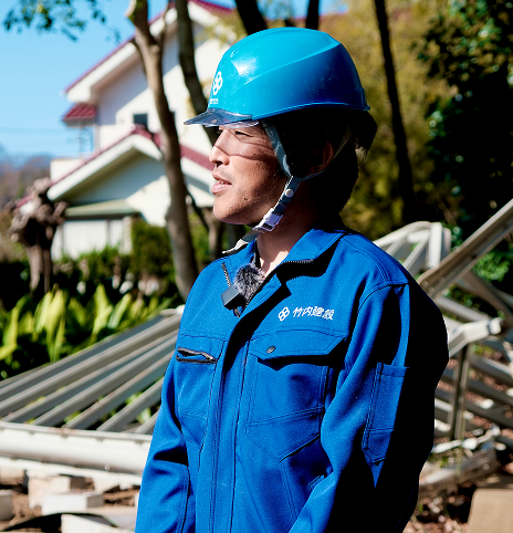 竹内建設の取締役として解体班をまとめ、現場を統括している竹内さんのインタビューです。